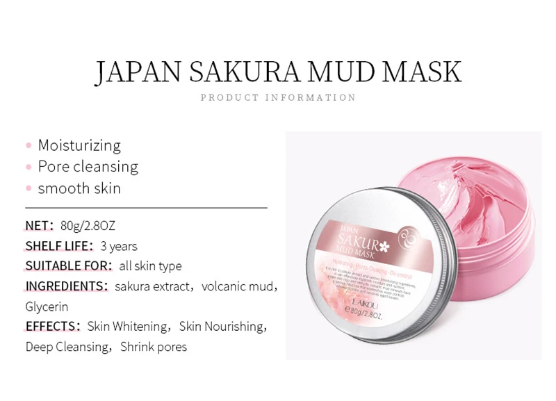 English packaging cross-border manufacturer LAIKOU Sakura Mud Mask 80g