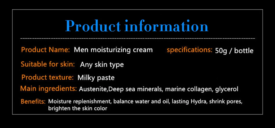 Product name: men moisturizing cream Specifications: 50g/bottle