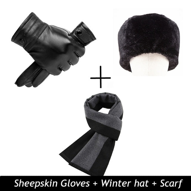 Men Genuine Sheepskin Leather Gloves Autumn Winter Warm Touch Screen Full Finger Black Gloves High Quality S019