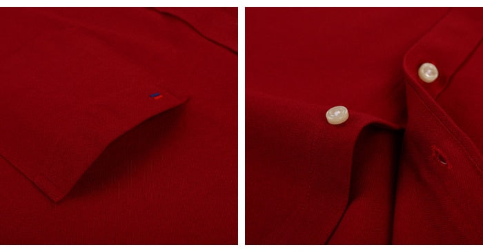 Men's Long Sleeve Oxford Plaid Striped Casual Shirt Front Patch Chest Pocket Regular-fit Button-down Collar Thick Work Shirts