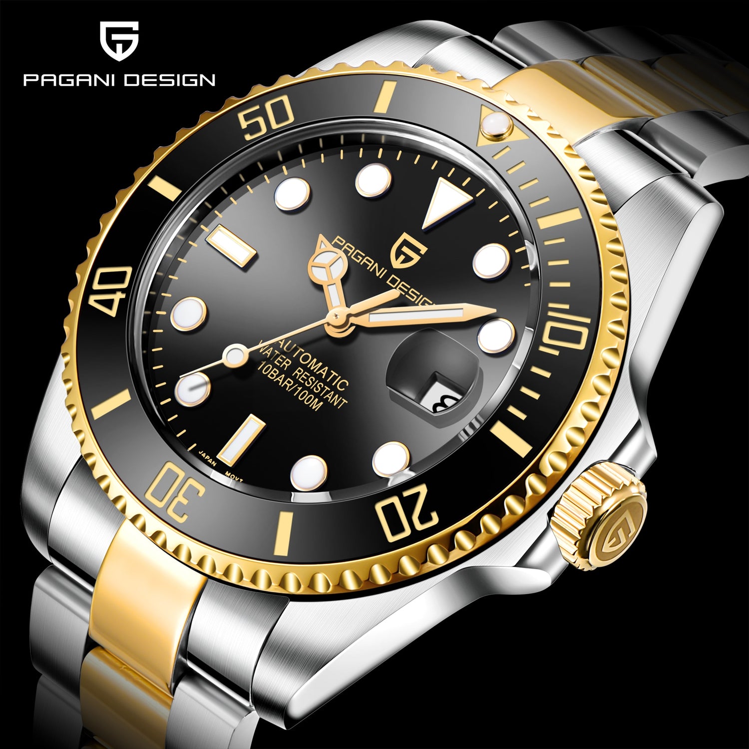 PAGANI Design Brand Luxury Men Watches Automatic Black Watch Men Stainless Steel Waterproof Business Sport Mechanical Wristwatch