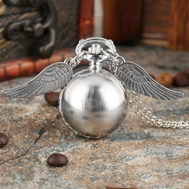 Retro Snitch Ball Shaped Potter Quartz Pocket Watch Fashion Sweater Angel Wings Necklace Chain Gifts for kids Anime Accessories
