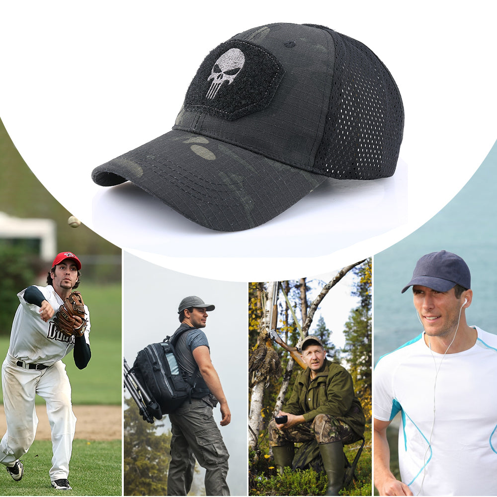 Skull Tactical Military Airsoft Cap Adjustable Breathable Sun Visor Trucker Hat Mesh Hunting Hiking Baseball Skeleton Snapback