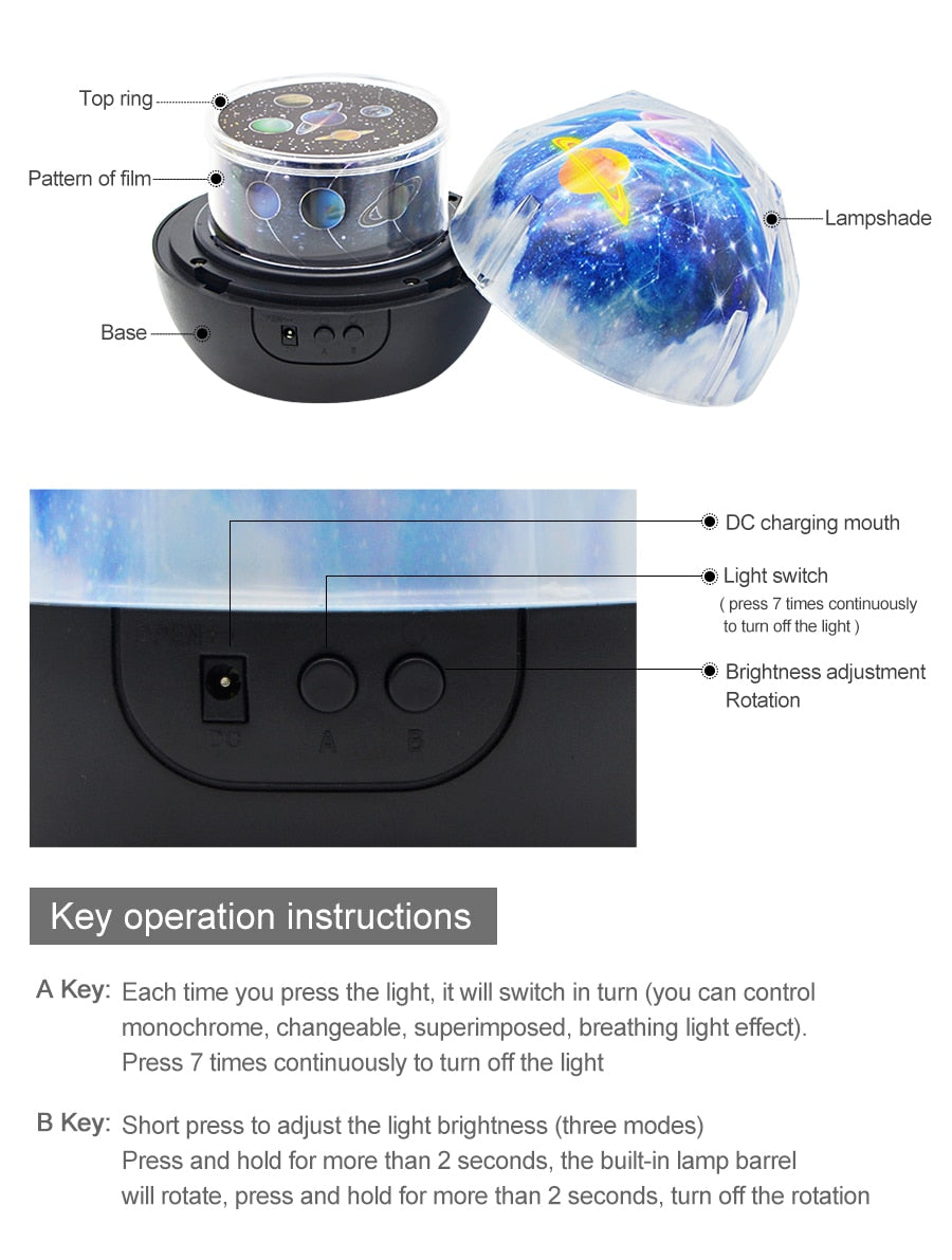 Function: Night Light And Projector Can Be Changed Easily